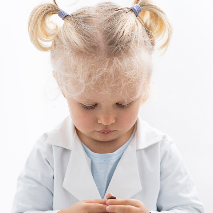 در سنین ۲ تا ۳ سالگی: اولین علائم بیماری ظاهر میشود. پوست چروکیده، رشد غیرطبیعی، ریزش مو و کاهش رشد در این سن به وضوح قابل مشاهده هستند.